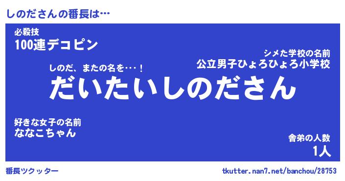 | ヒーロー風カッコイイあだ名 | 『スーパーシノダ』『ウルトラしのだマン』 |