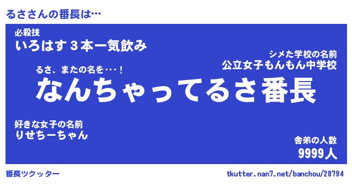 | ヒーロー風カッコイイあだ名 | 『スーパールサ』『ウルトラるさマン』 |