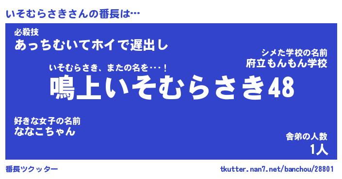 | ヒーロー風カッコイイあだ名 | 『スーパーイソムラサキ』『暗黒騎士イソ』 |
