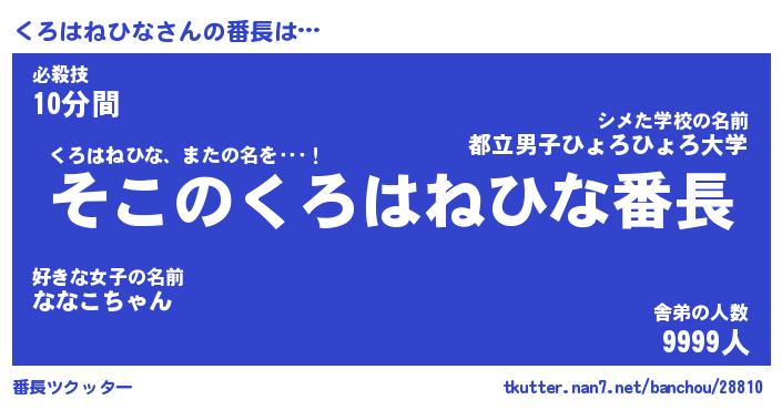 | 伝説のあだ名 | 『不死鳥のスナイパーくろはねひな』 |