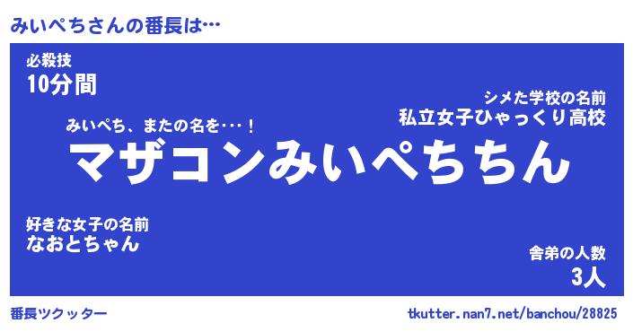| 伝説のあだ名 | 『封印されしスナイパーみいぺち』 |