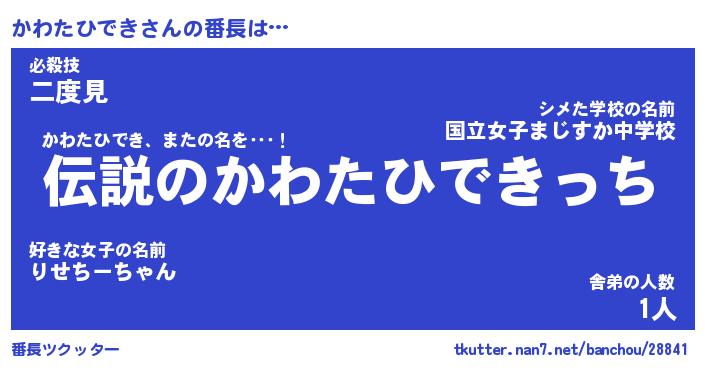 | ポケモン風あだ名 | 『カワチュウ』『カワタダネ』 |