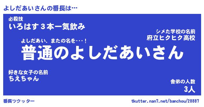 | 肩書あだ名 | 『よしだあい御曹司』『よしだあい班長』 |