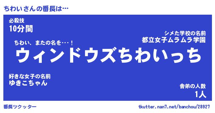 | ヘコむあだ名 | 『ちわにー』『牛乳』『ちわ太郎』 |