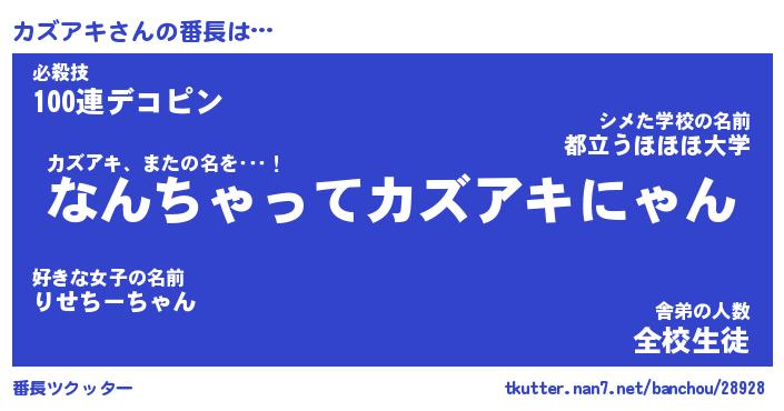 | ピコ太郎風あだ名 | 『カコ十郎』『ピカ史郎』『カズ二郎』 |