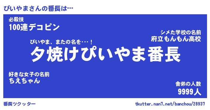 | ヘコむあだ名 | 『ぴいもー』『つくし』『ぴい太郎』 |