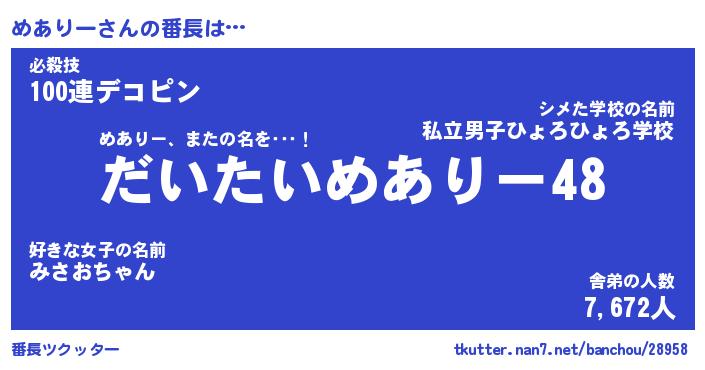 | ヘコむあだ名 | 『めあっふぃ~』『酢こんぶ』 |