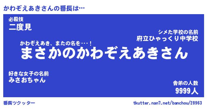 | 肩書あだ名 | 『かわぞえあきCEO』『かわぞえあき団長』 |
