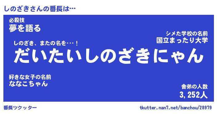 | ファンタジー風あだ名 | 『シノフェル』『エターナルシノザキー』 |