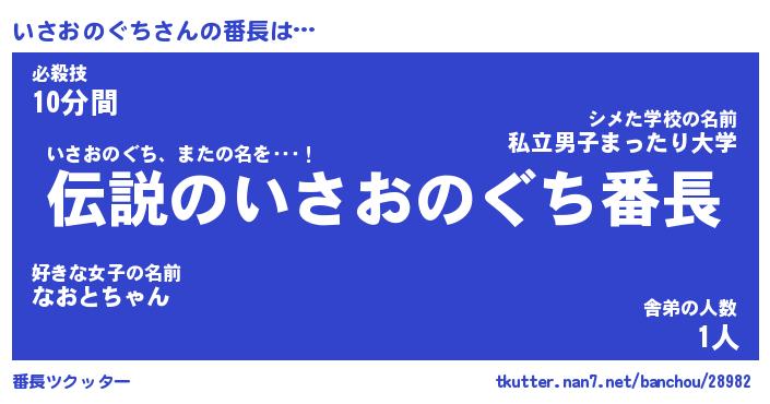 | 男性向けラノベタイトル風あだ名 | 『いさおのぐちの憂鬱』 |