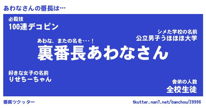| ヒーロー風カッコイイあだ名 | 『スーパーアワナ』『ウルトラあわなマン』 |