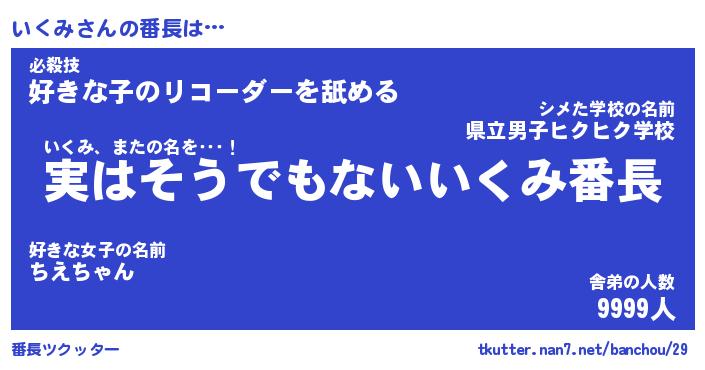 | ヒーロー風カッコイイあだ名 | 『スーパーイクミ』『ウルトラいくみマン』 |