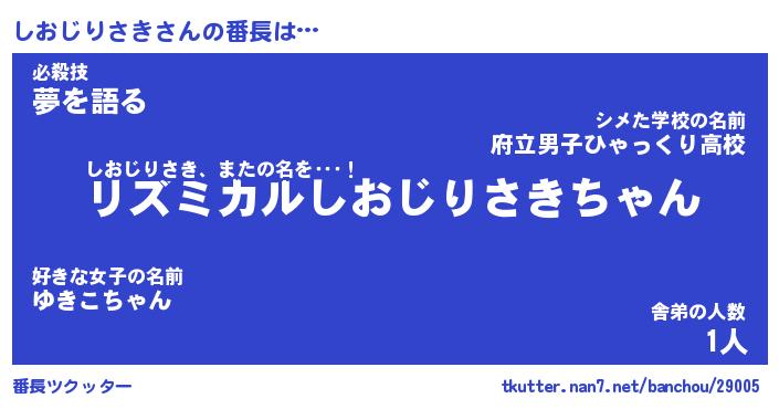 | 男性向けラノベタイトル風あだ名 | 『しおじりさきの憂鬱』 |