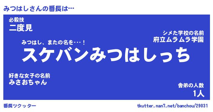 | ピコ太郎風あだ名 | 『ミコ十郎』『ピミ三郎』『ミツ三郎』 |