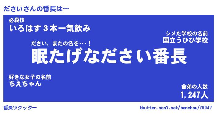 | 2回繰り返すあだ名 | 『ださださ』『だだささ』『ぶかぶか』 |