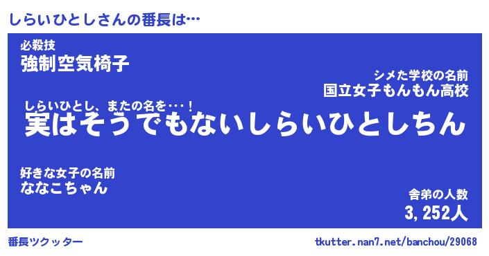 | 肩書あだ名 | 『しらいひとしCEO』『しらいひとし班長』 |