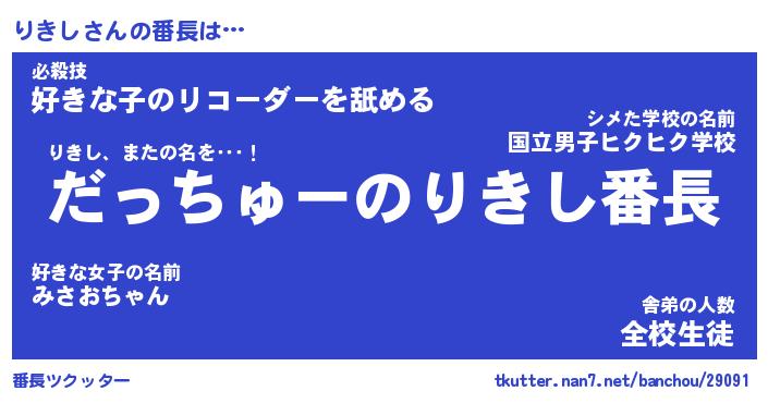 | 男性向けラノベタイトル風あだ名 | 『りきしの憂鬱』 |