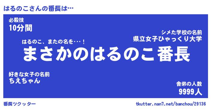 | 伝説のあだ名 | 『伝説のスナイパーはるのこ』 |