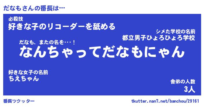 | ヘコむあだ名 | 『だなにー』『レバニラ』『だなを』 |