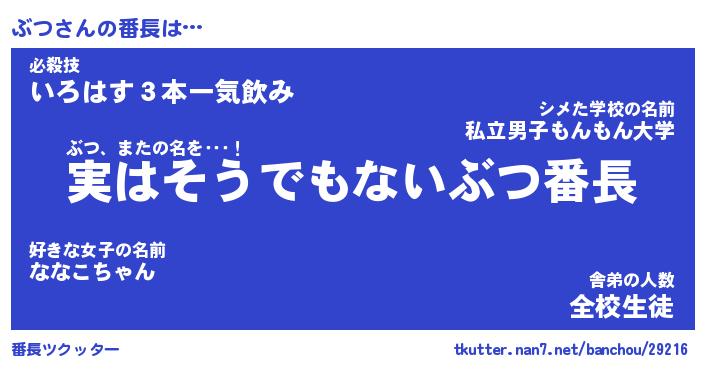 | ポケモン風あだ名 | 『ブツチュウ』『ブツダネ』『ヒブツ』 |