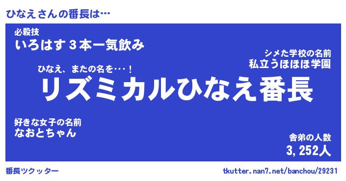 | ヘコむあだ名 | 『ひなにー』『なまこ酢』『ひな太郎』 |