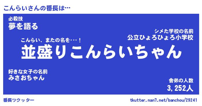 | 意味不明あだ名 | 『ペロリンこんらい』『永久保存こんらい』 |