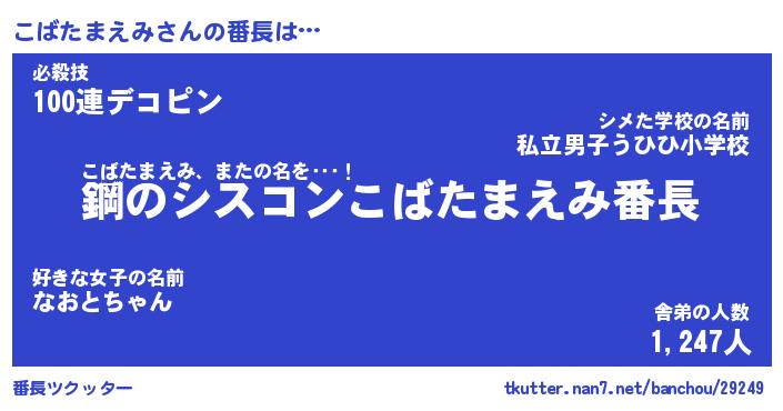 | 肩書あだ名 | 『こばたまえみ店長』『こばたまえみ校長』 |