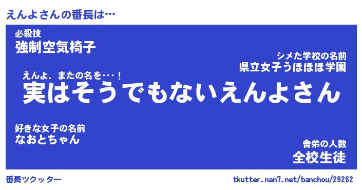 | 肩書あだ名 | 『えんよ御曹司』『えんよ国家主席』 |
