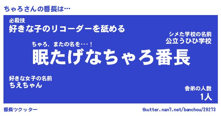 | ヒーロー風カッコイイあだ名 | 『スーパーチャロ』『ウルトラちゃろマン』 |