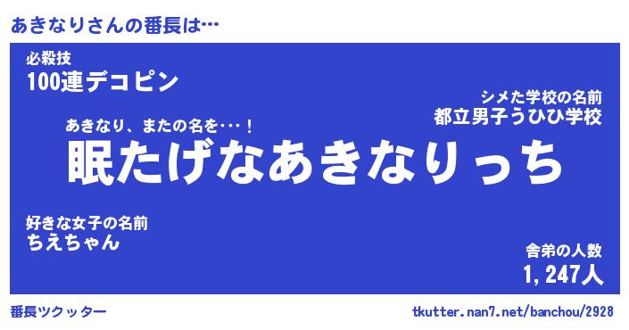 | ヘコむあだ名 | 『あきっふぃ~』『牛乳』『あき太郎』 |