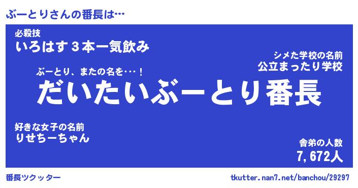 | 男性向けラノベタイトル風あだ名 | 『ぶーとりの憂鬱』 |