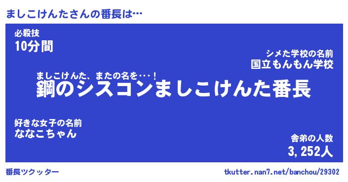 | 伝説のあだ名 | 『封印されしスナイパーましこけんた』 |