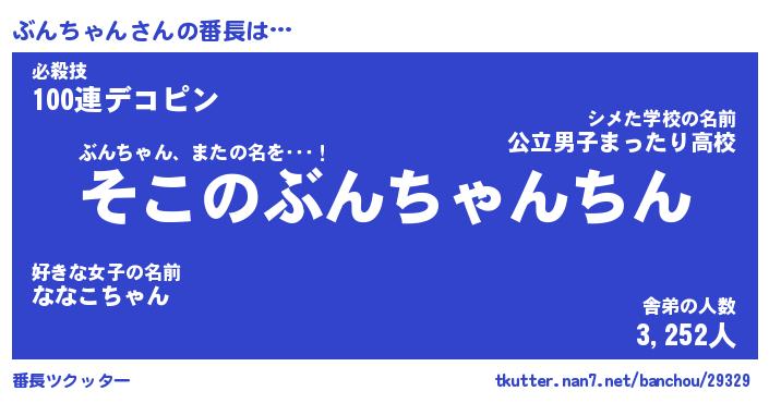 | ファンタジー風あだ名 | 『ブンフェル』『エターナルブンチャンー』 |