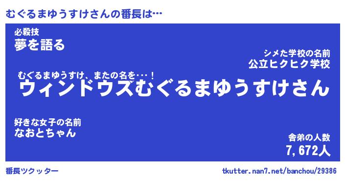 | 男性向けラノベタイトル風あだ名 | 『むぐるまゆうすけの憂鬱』 |
