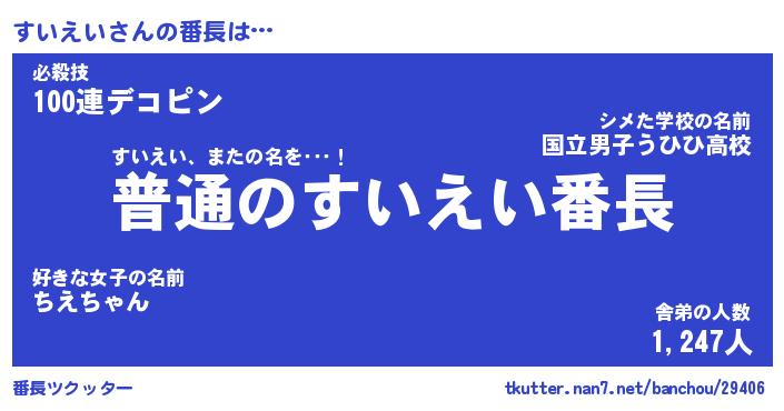 | 意味不明あだ名 | 『ペロリンすいえい』『永久保存すいえい』 |