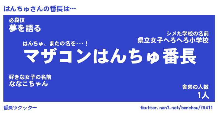 | 肩書あだ名 | 『はんちゅ店長』『はんちゅ大統領』 |