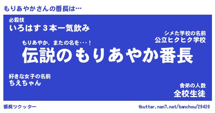 | ヒーロー風カッコイイあだ名 | 『スーパーモリアヤカ』『暗黒騎士モリ』 |