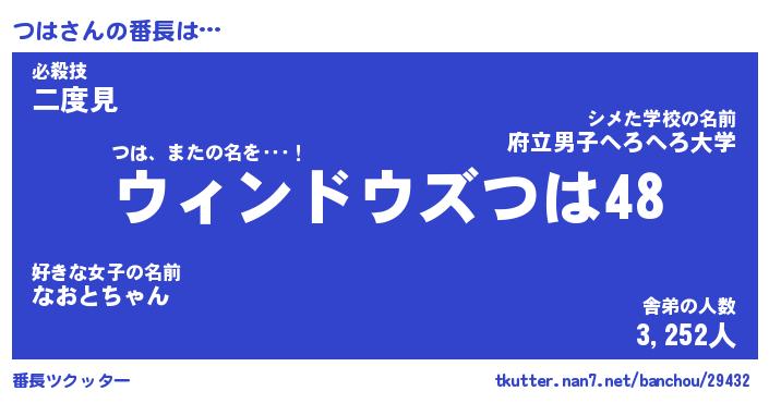| ヘコむあだ名 | 『つはもー』『豆乳』『つはお』 |