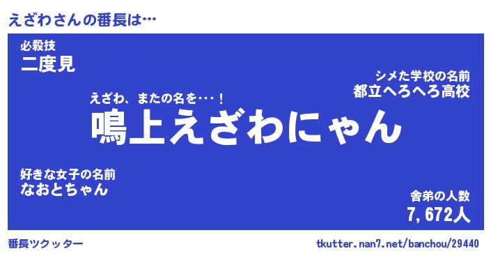 | 2回繰り返すあだ名 | 『えざえざ』『ええざざ』『ぬらぬら』 |
