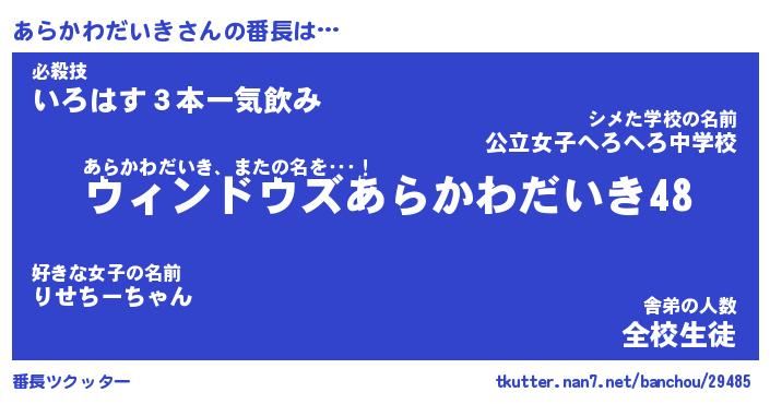| ヘコむあだ名 | 『あらにー』『レバニラ』『あら太郎』 |