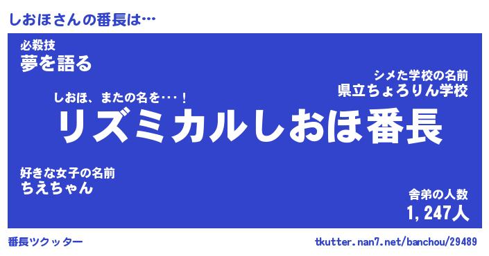 | 意味不明あだ名 | 『ペロリンしおほ』『しおほフォーエバー』 |