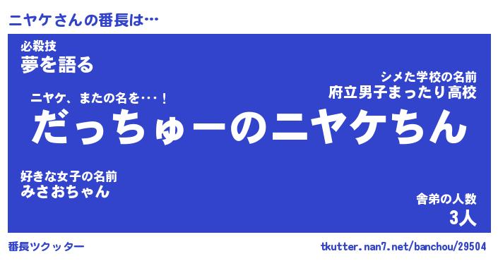 | ピコ太郎風あだ名 | 『ニコ二郎』『ピニ一郎』『ニヤ史郎』 |