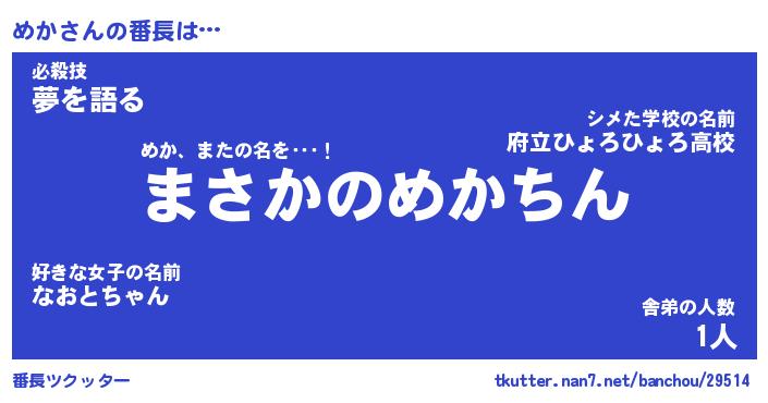 | 意味不明あだ名 | 『ペロリンめか』『めかフォーエバー』 |