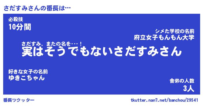 | 意味不明あだ名 | 『ペロリンさだすみ』『永久保存さだすみ』 |