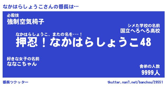 | 伝説のあだ名 | 『封印されしスナイパーなかはらしょうこ』 |