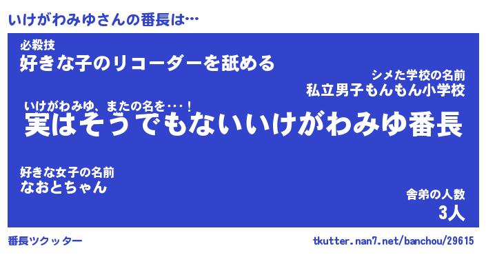 | 伝説のあだ名 | 『封印されしスナイパーいけがわみゆ』 |