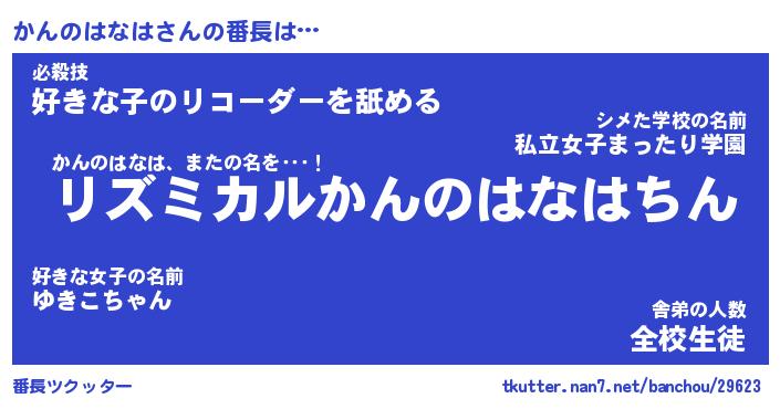 | 意味不明あだ名 | 『ペロリンかんのはなは』 |
