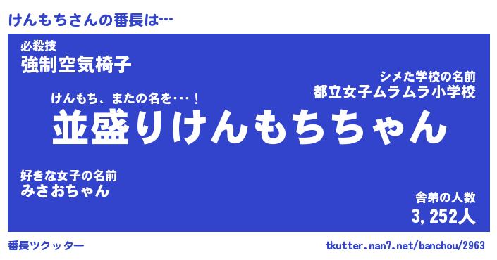 | ヒーロー風カッコイイあだ名 | 『スーパーケンモチ』『幻影騎士ケン』 |