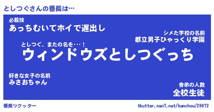 | ヒーロー風カッコイイあだ名 | 『スーパートシツグ』『天弓騎士トシ』 |