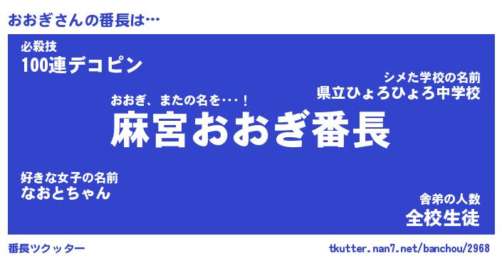 | ヒーロー風カッコイイあだ名 | 『スーパーオオギ』『ウルトラおおぎマン』 |